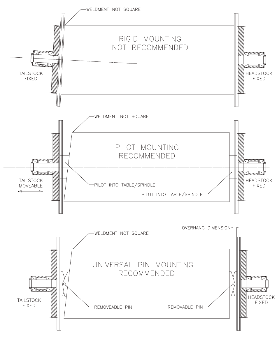 Head and Tailstock Positioners are used to support and rotate long or heavy weldments about a horizontal axis. Selecting the appropriate Head and Tailstock model depends the overhang of your work piece and maximum weight capacity required. The following descriptions and specifications provide a clear, logical checklist to help you select the right positioning equipment for your application.