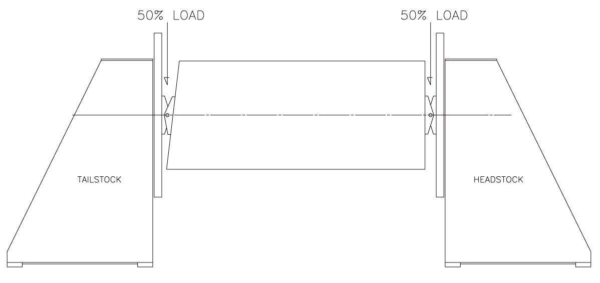 A typical configuration consists of one powered headstock, which provides rotation, and one non-powered tailstock, which supports the opposite end of the workpiece. Ideally, the load should be evenly distributed between the headstock and tailstock. If the center of gravity along the rotational centerline causes either unit to support more than half of the total load, a higher-capacity model may be required.