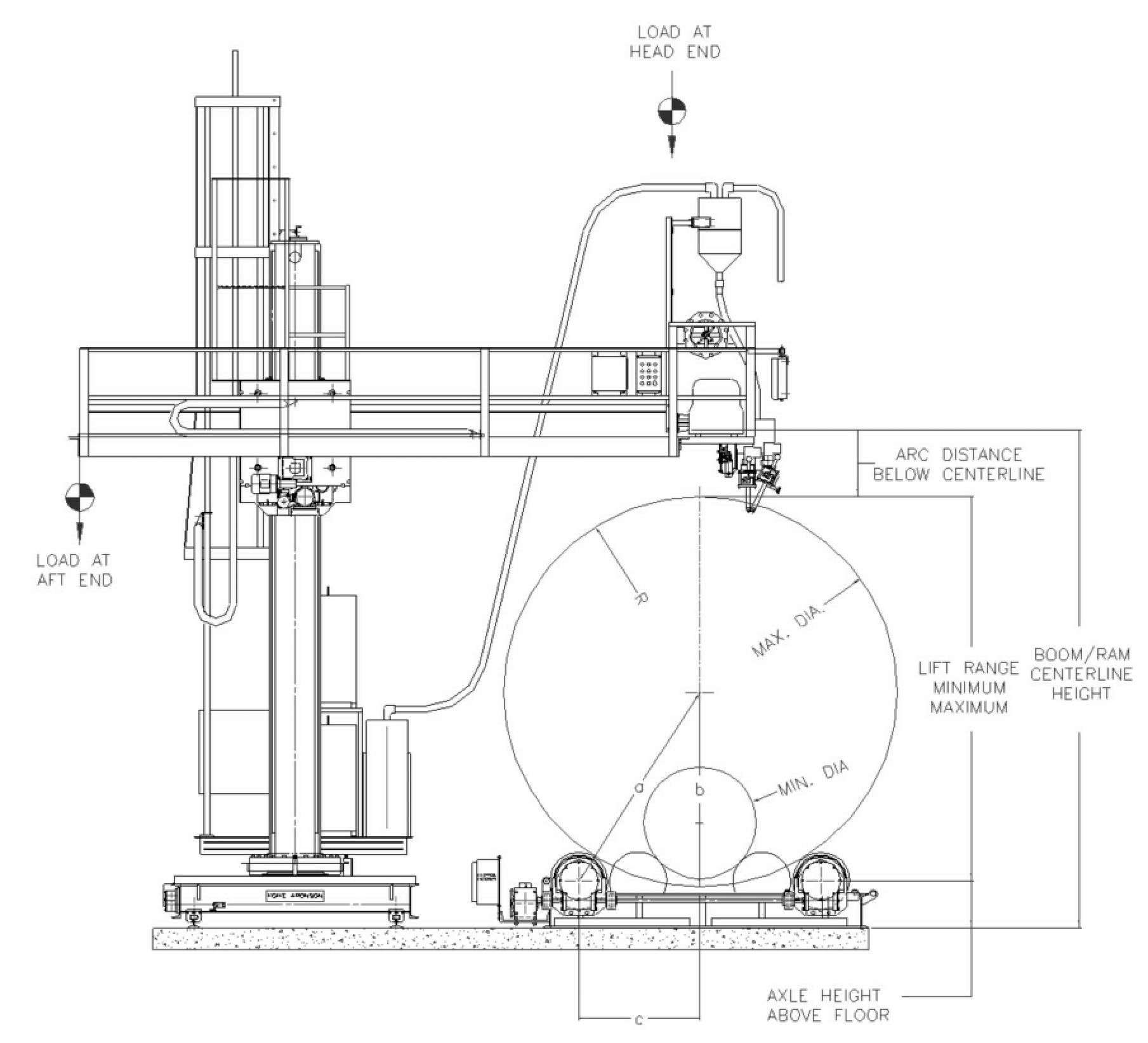 Lift and reach requirements are determined by the most extreme vertical and horizontal arc locations required for the weld.