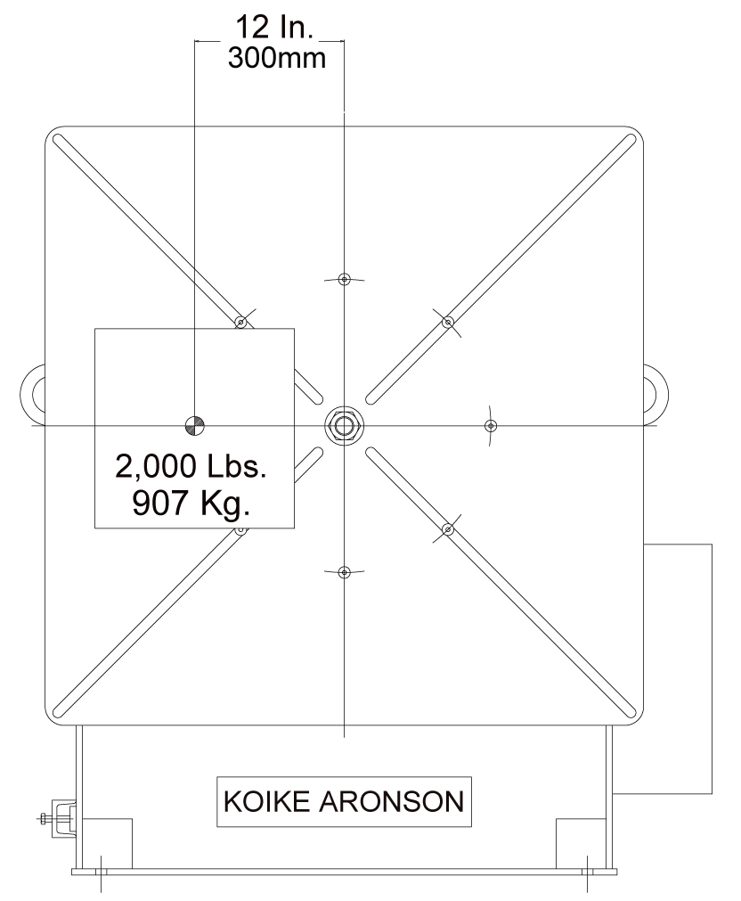to 40,000 lb (18,140 kg) with the center of gravity located 12 in (300 mm) from the surface of the table.