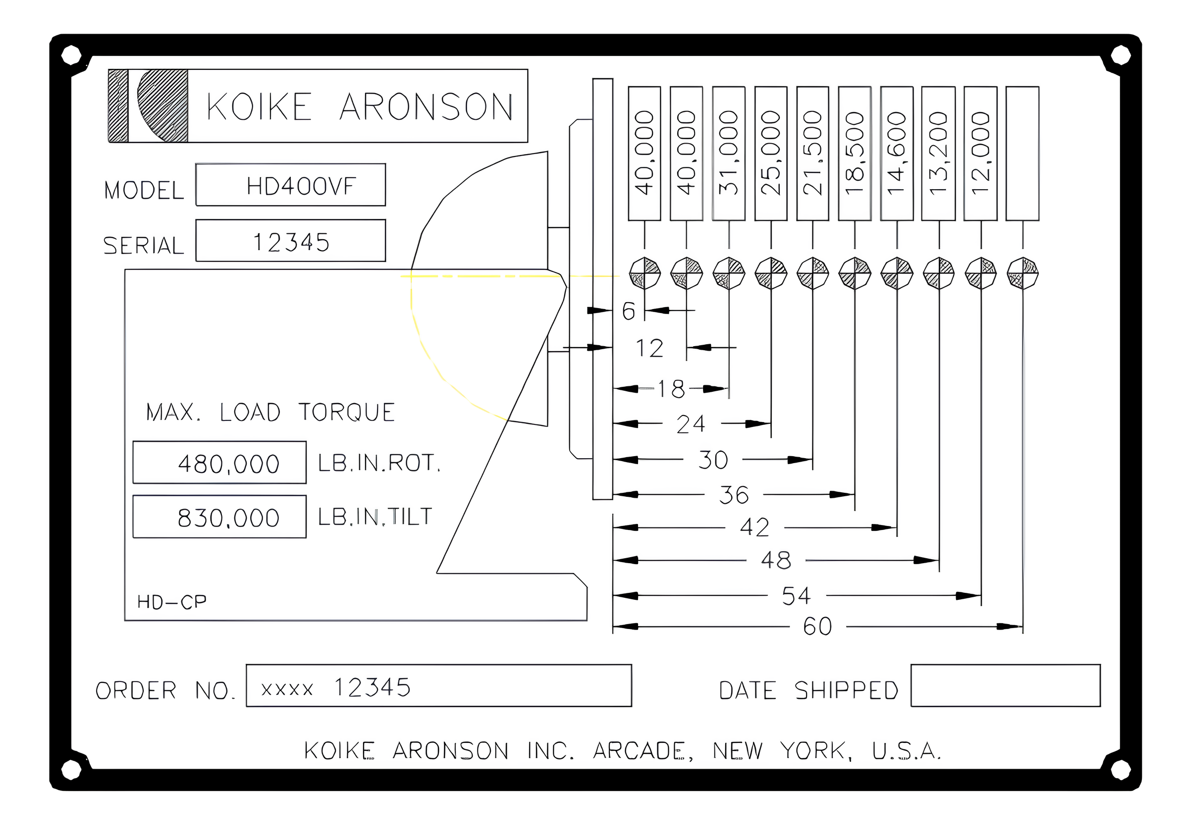 This example features the capacity plate for a Model HD400. The HD400 is rated to handle loads up